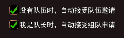 在组队界面下方,可以看到2个选项。该选项在勾选之后,当我没有入队或我是队长时,别人的组队邀请或入队邀请将被自动同意,只要队伍有足够位置就会被自动邀请入队。