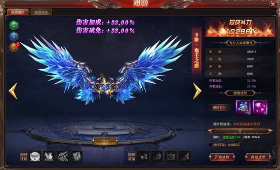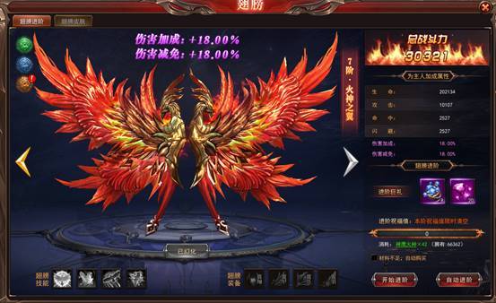 翅膀,天地神兽之羽幻化而成,神兽的灵气充斥其中,可为佩戴者提高大量逆天属性。随着对其不断地进行升阶,其外形也会发生翻天覆地的改变。据佩戴者描述,他就像一个百变的少年般让人着迷!他的抚摸如初恋情人般温柔,而他发起狂来,却似乎可以在一瞬间摧毁整个世界。